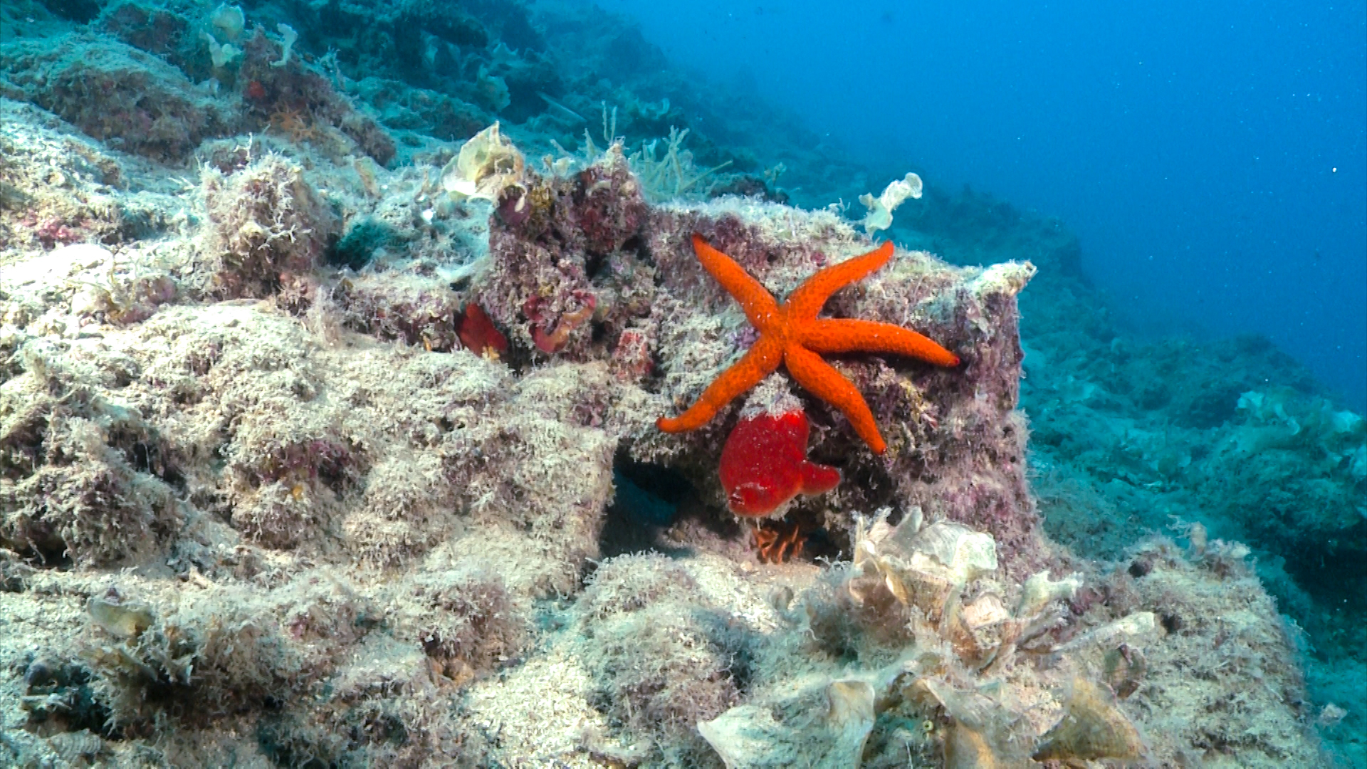 Karaburun - Sazan underwater and above collection of photos The amazing gift that nature has given. 2 the crown of Sabella spalanzanii2 the sea urchin Centrostephanus longispinusMonk seal individual appearing at Karaburun-Sazani MPAA dish of sea urchinsA diversity of animals at a shipreckBrown algae seascapeCystoseira nodosa meadowEntrance of Haxhi Aliu CaveExploring underwater objectsGrama BayGrama BayKaraburunOne of refuge bays in KaraburuniRed and brown algaes in few meters underwaterRock engraves in Grama Bay 1Rock engraves in Grama Bay 3The sea star Ophidiaster ophidianus on a rockPosidonia
