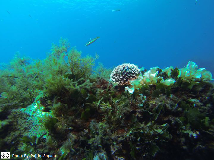 Coralligenous algae, a biogenic formation building a rim which can extend locally to more than 1m in width, are present at the mediolittoral stage along the western coasts of Karaburun, Sazan island and Rreza e Kanalit area.